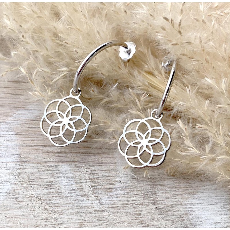 Découvrez nos boucles d’oreilles avec de jolis pendants en forme de graine de vie.